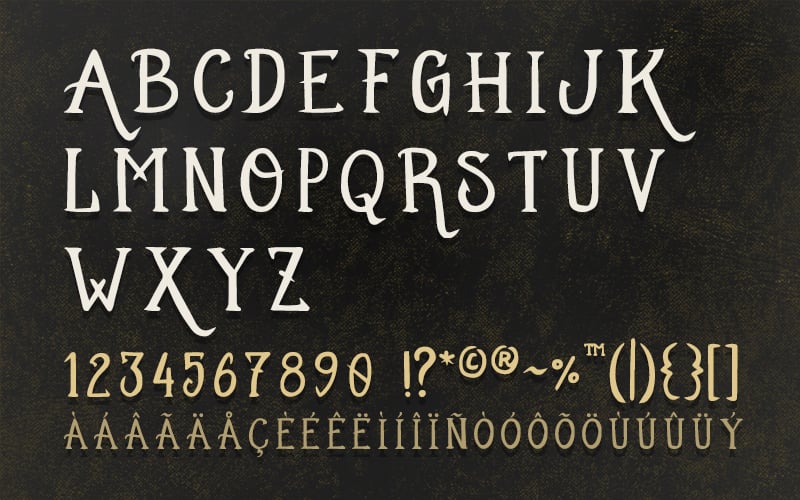 A hand-drawn, vintage style font. Works well as headlines, secondary headings and body copy. Great for banners, logos, badges, video content; where ever. Plenty of extras and alternatives added in as well.